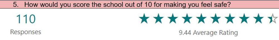 In a recent survey with our children, they said that they feel safe and cared for in school.