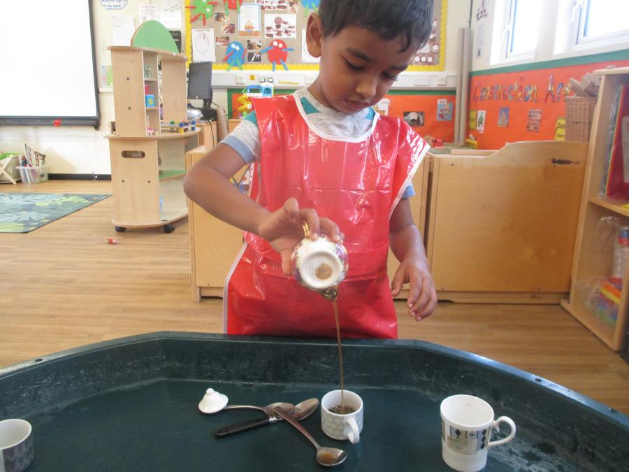 We have an inviting messy play area offering sand and water play, painting and lots opportunities to explore textures and colours. Some of our favourites are: