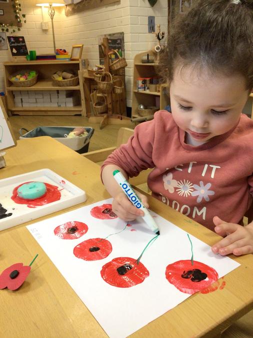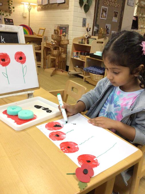 The children were introduced to Remembrance day. We talked about Poppies and about the soldiers that had fought in the war. The children printed their own poppies and took part in a two minute silence. We watched a beautiful video designed for young children.