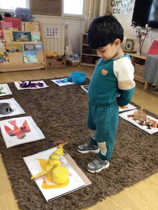 Our core book this week was ‘Brown Bear, Brown Bear, What Can You See?’ We went on a colour hunt and found objects that matched the colours in the story. The children are beginning to name more than just the primary colours.