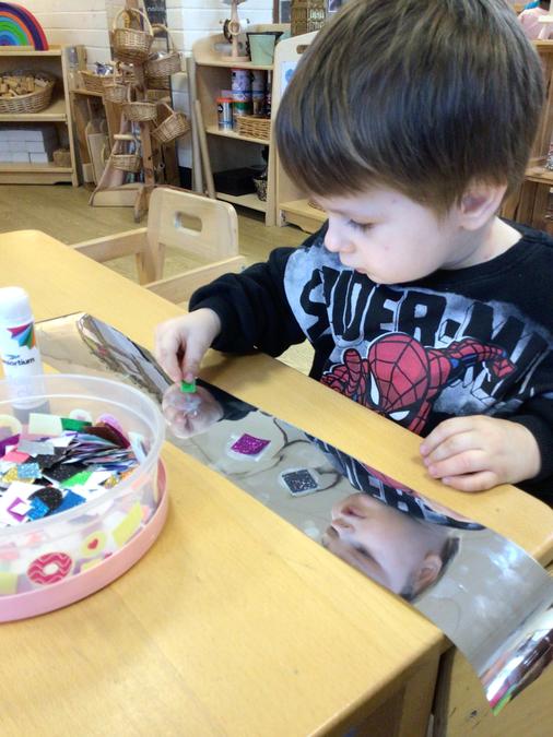 Welcome back to nursery. The children have settled well and are already demonstrating that they are curious learners. We have been exploring 'all about me' and the children have been sharing who lives in their house and who is in their family. Using loose parts the children have created beautiful self portraits after looking at their features in the mirror.