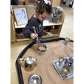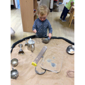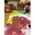 We have been mark making on the floor week, supporting the children to develop core strength and large motor skills.