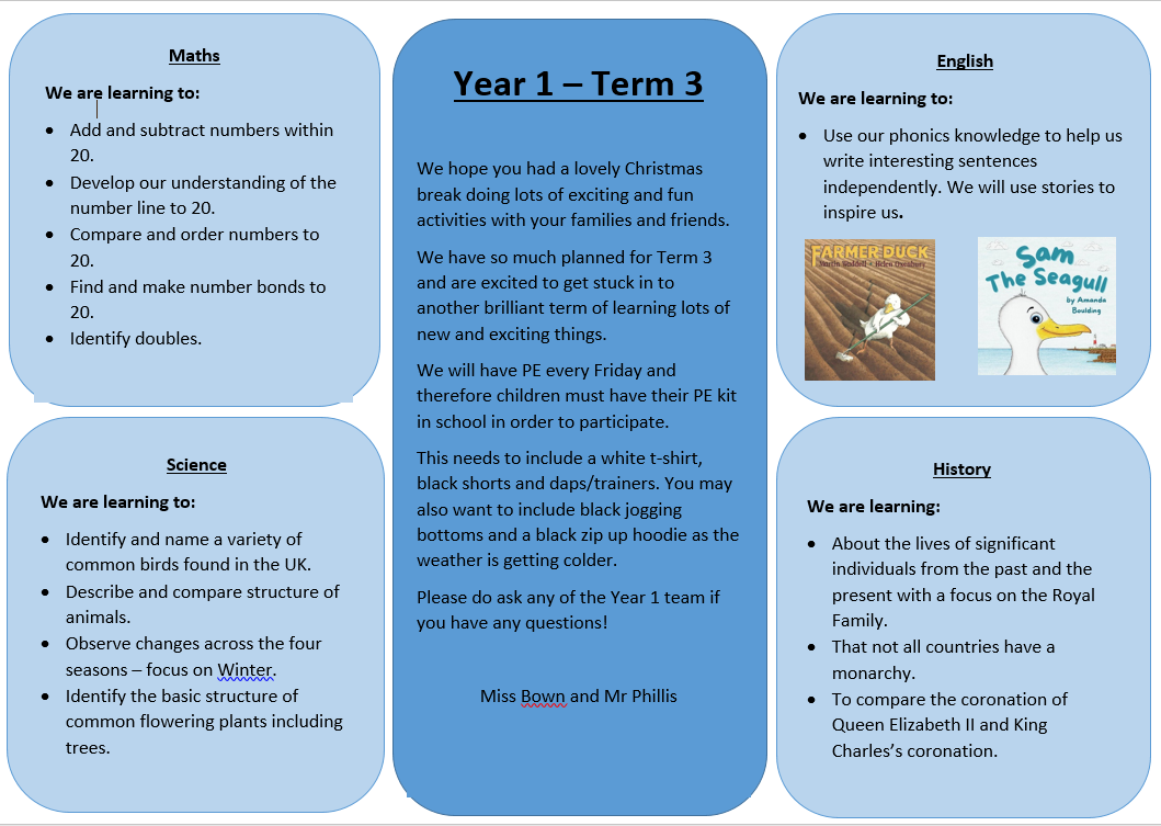 The adults in your child's class are: Miss Bown and Mr Phillis
