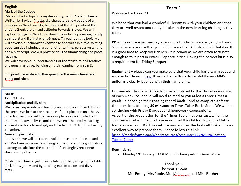 What are we learning in Year 4?