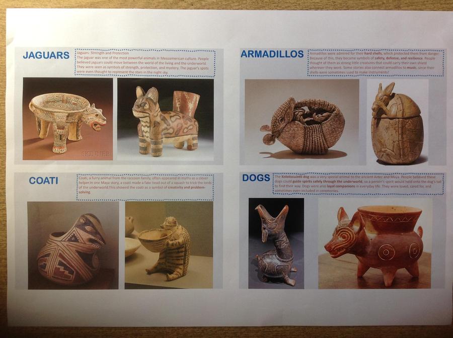 We have had a few busy days working on an art project. We looked at different animals that are important to the Mesoamerican, Aztec and Maya cultures in America and what each animal means to them. We worked on designing which animal we wanted to create and the different patterns they had. Once we had completed this we then worked on making our designs out of clay.