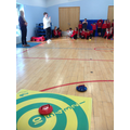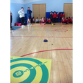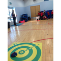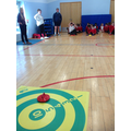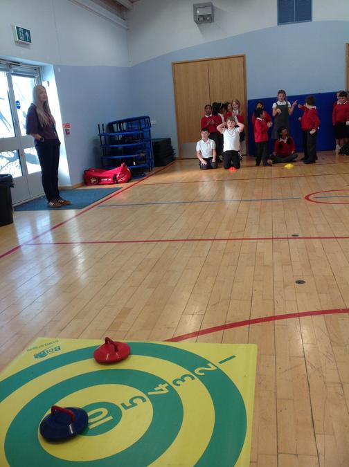 We have had a Curling workshop where we have all learnt how to stand in the correct position. We then split into 4 teams and played some games against each other. We had to try and get our stone on to the target or knock our a opponents stone of the target.