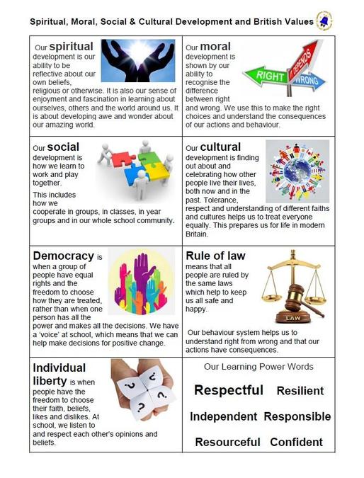 British values are fundamental to British society and promoting cohesion and integration. The promotion of these values also seen helps us to protect children from extremist ideologies and to help prepare them for life in modern Britain.