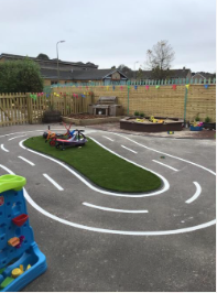 The children have opportunities to use balance bikes, trikes and scooters. We have a range of items that the children can access themselves such as balls, bats, hoops, beanbags, dancing ribbons and stilts.