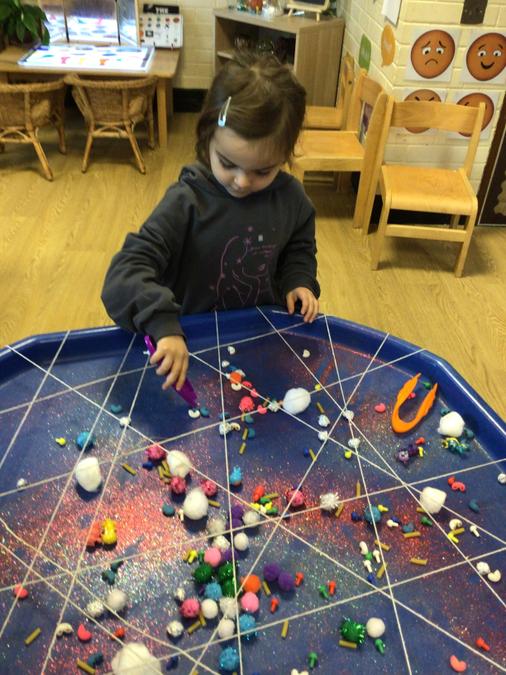 We have a finger gym station permanently in the room where we offer interesting and exciting fine motor activities for the children to access independently.