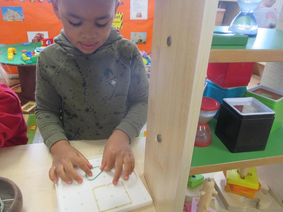 * Peg boards * Sorting bears * 2D and 3D shapes * playdough * number books and rhymes * puzzles * Building blocks and construction * Shape sorters * small world toys