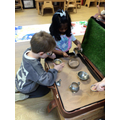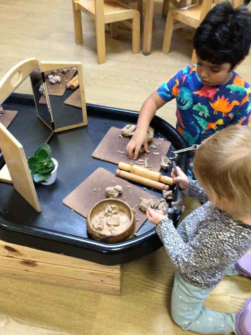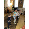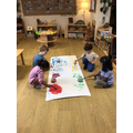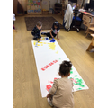 We have been mark making on the floor week, supporting the children to develop core strength and large motor skills.