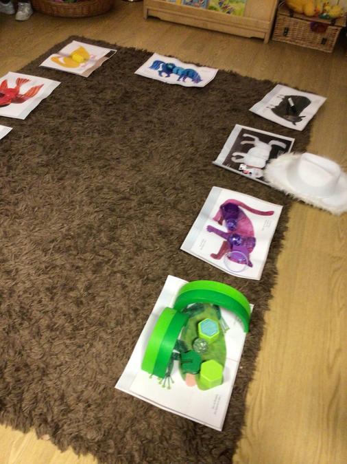 Our core book this week was ‘Brown Bear, Brown Bear, What Can You See?’ We went on a colour hunt and found objects that matched the colours in the story. The children are beginning to name more than just the primary colours.