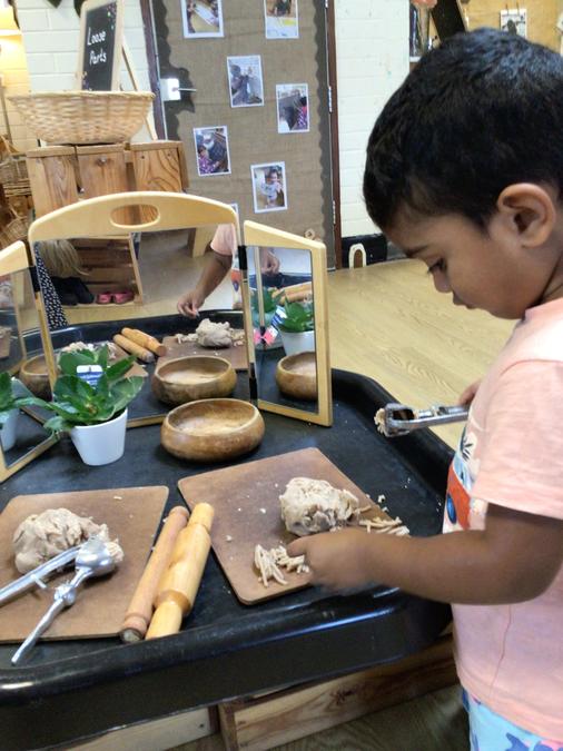 Welcome back to nursery. The children have settled well and are already demonstrating that they are curious learners. We have been exploring 'all about me' and the children have been sharing who lives in their house and who is in their family. Using loose parts the children have created beautiful self portraits after looking at their features in the mirror.